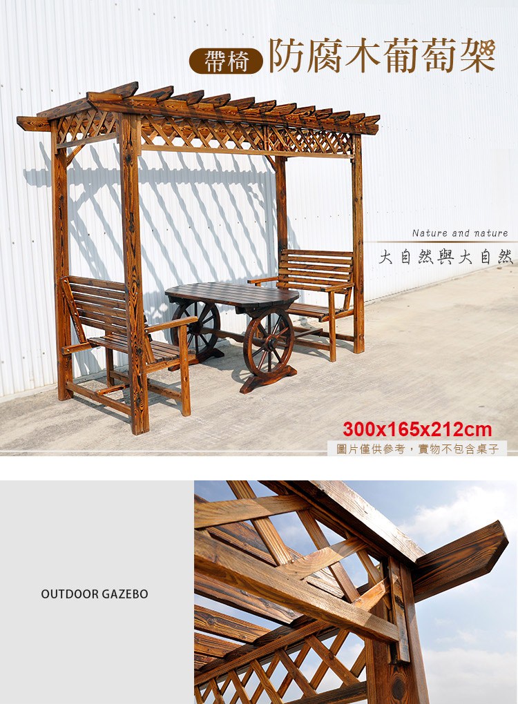 【LOGIS】葡萄架防腐實木涼庭桌椅 戶外庭院 花園景觀椅FFD95-TA