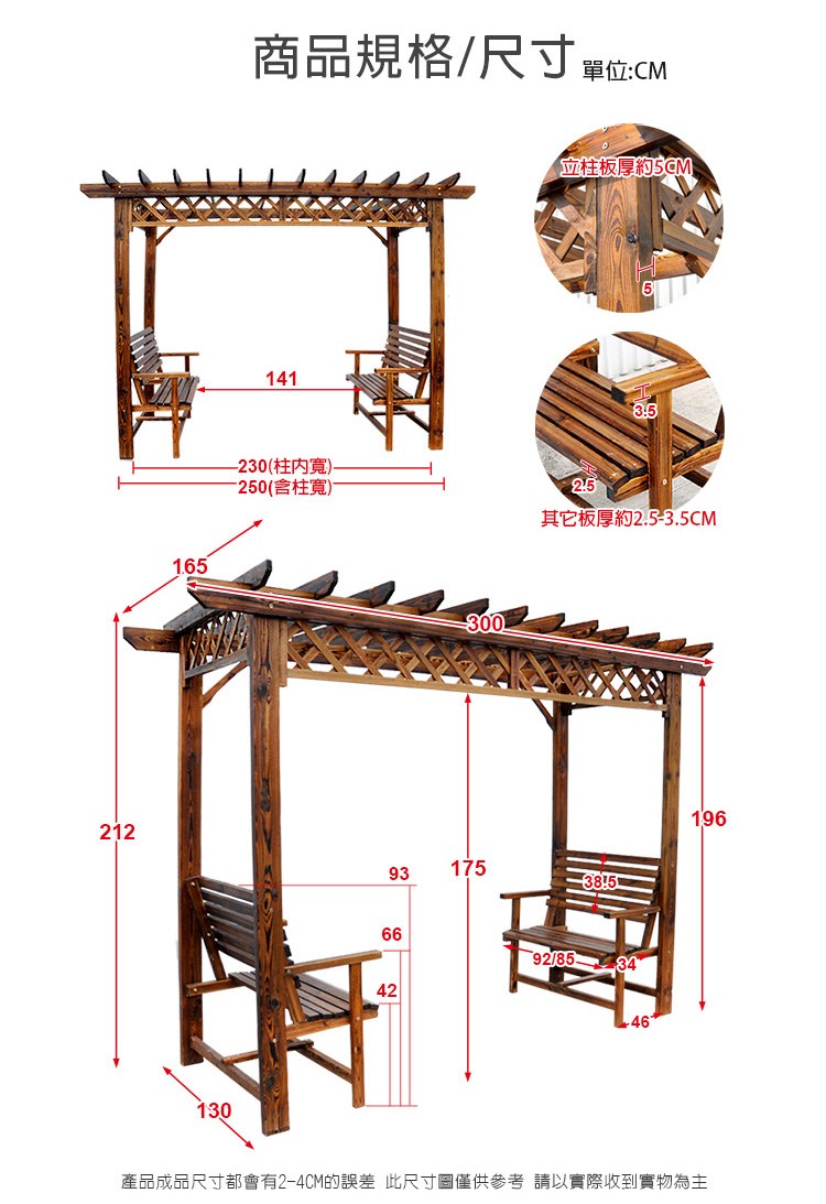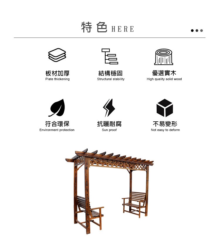 ★全實木經碳化防腐、防水、防蛀、防腐處理,有著天然清晰實木紋理