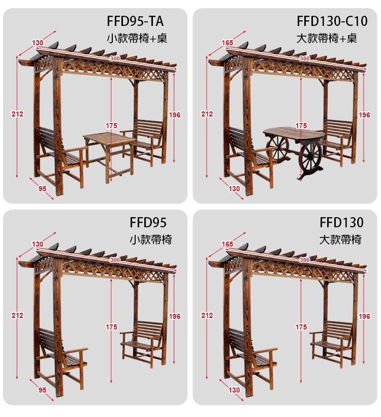 LOGIS小葡萄架防腐實木涼庭花架含椅戶外庭院 花園景觀椅FFD95