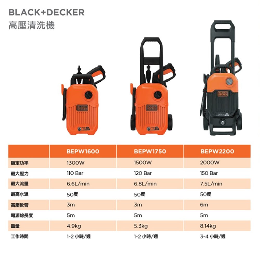 BEPW1600 BLACK+DECKER 110bar 高壓清洗機