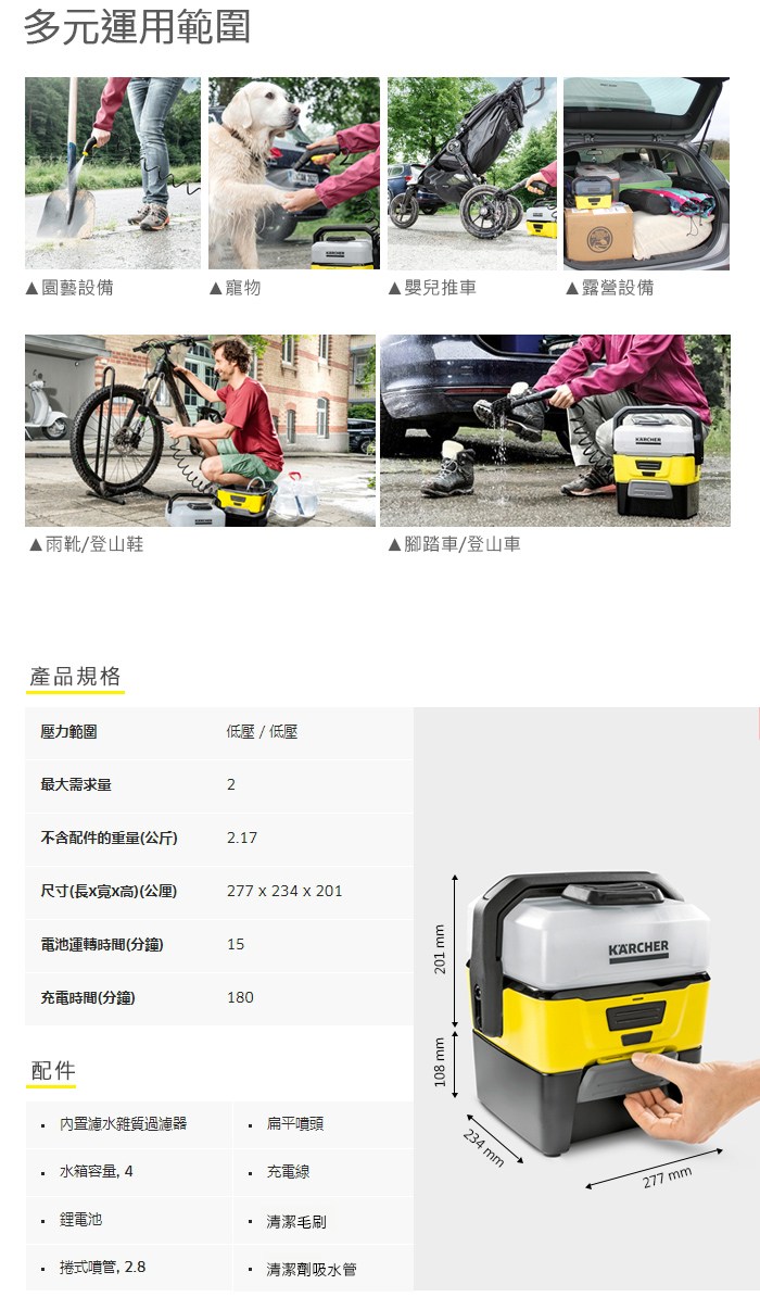 Karcher 凱馳 OC3-ADV 無線可攜式清洗機 冒險版 Adventure Box