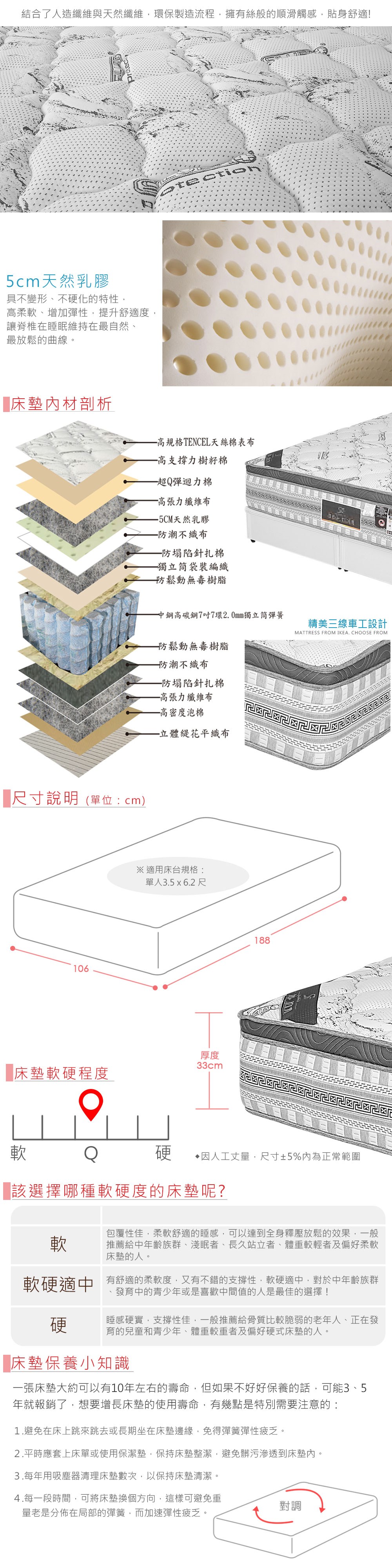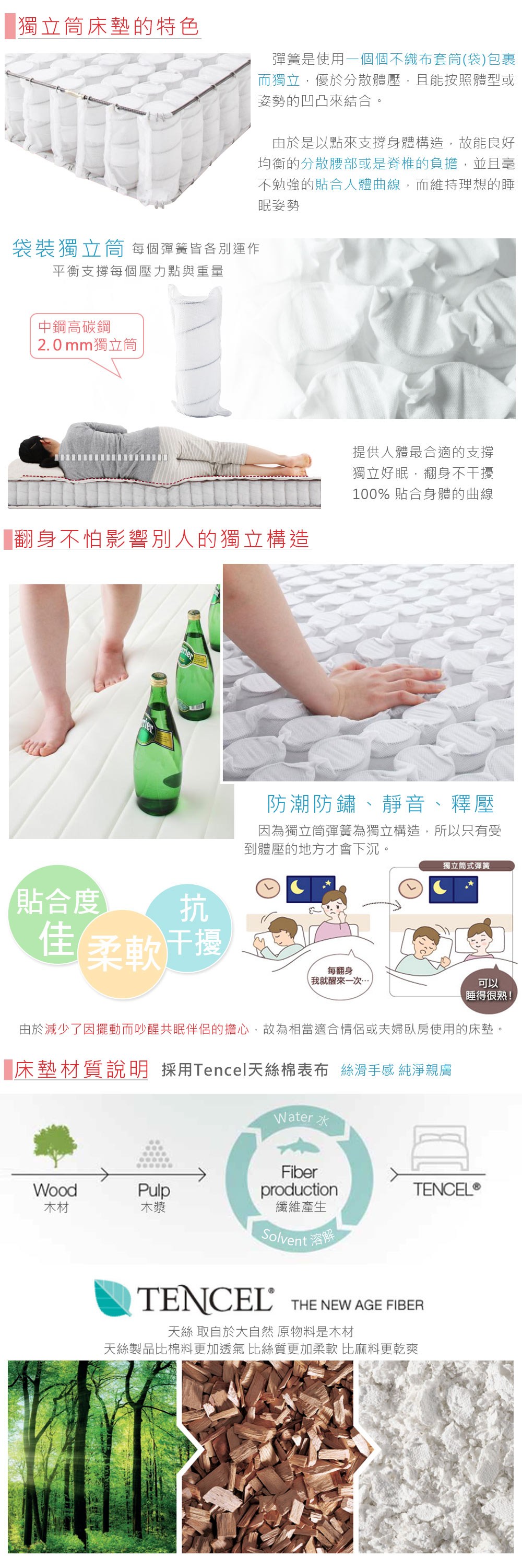 《新之森林》天絲乳膠抗菌防蹣13CM低獨立筒墊-單人加大3.5尺