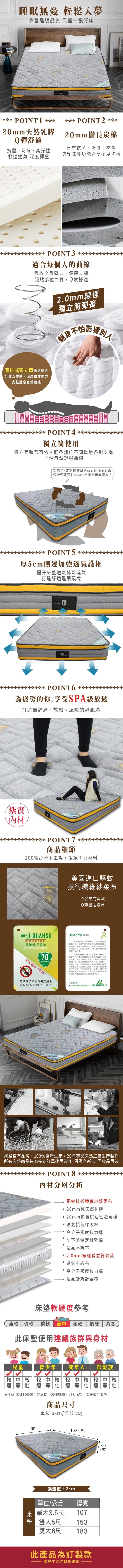 秘寶在這ASSARI-歐德乳膠備長炭強化側邊三線獨立筒床墊-雙人5尺
