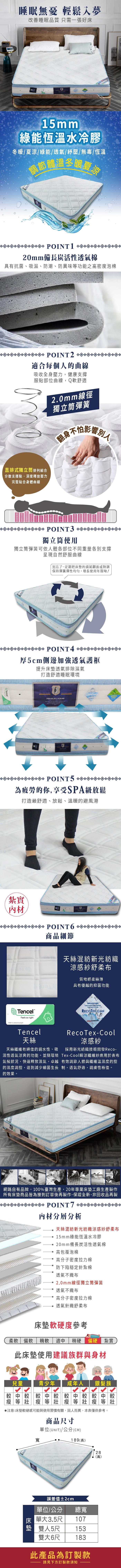 【顛覆設計】調溫表布 親水綿 乳膠 舒適健康床墊(雙人5尺)