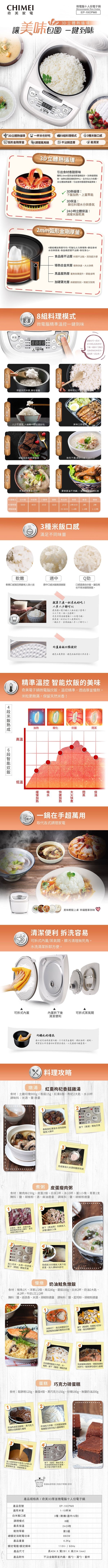 CHIMEI奇美 3D厚釜微電腦10人份電子鍋 EP-10CPM0