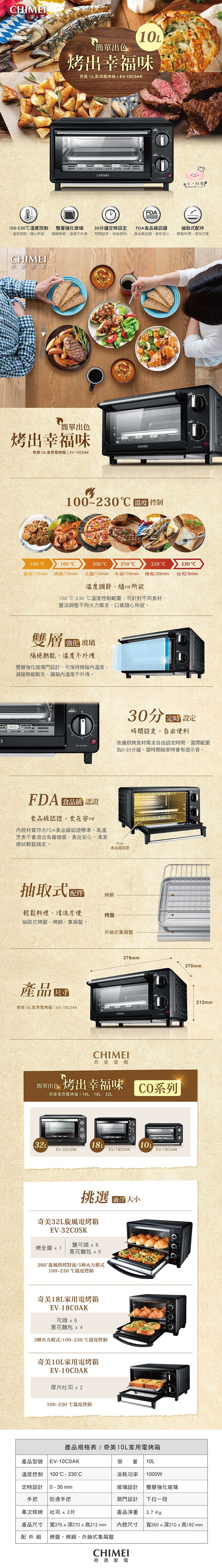 【CHIMEI 奇美】10公升家用電烤箱 EV-10C0AK 烤土司 可烤2片厚片 FDA食品級認證