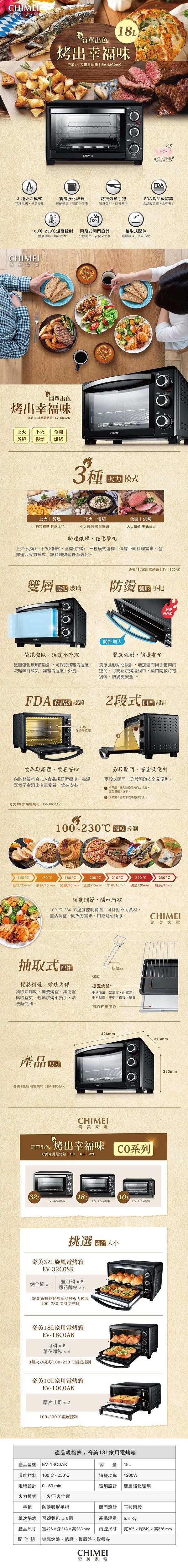 奇美CHIMEI 18公升家用電烤箱/EV-18C0AK/台