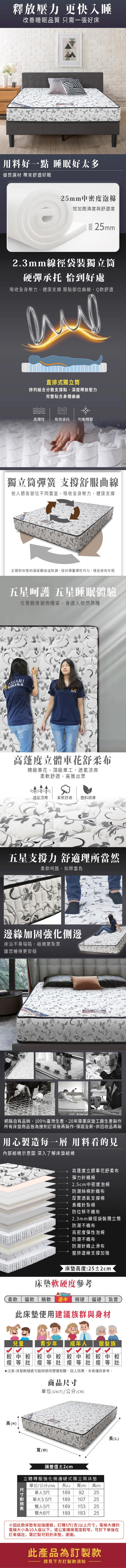 Albert艾柏 抗菌透氣3.5尺單人獨立筒床墊(3.5x6.2尺)-105x188x25cm