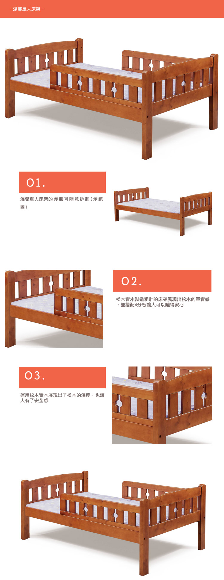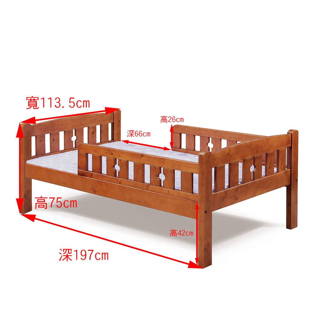Homelike 喜家居單人3.5尺護欄床架組(1912) 實木