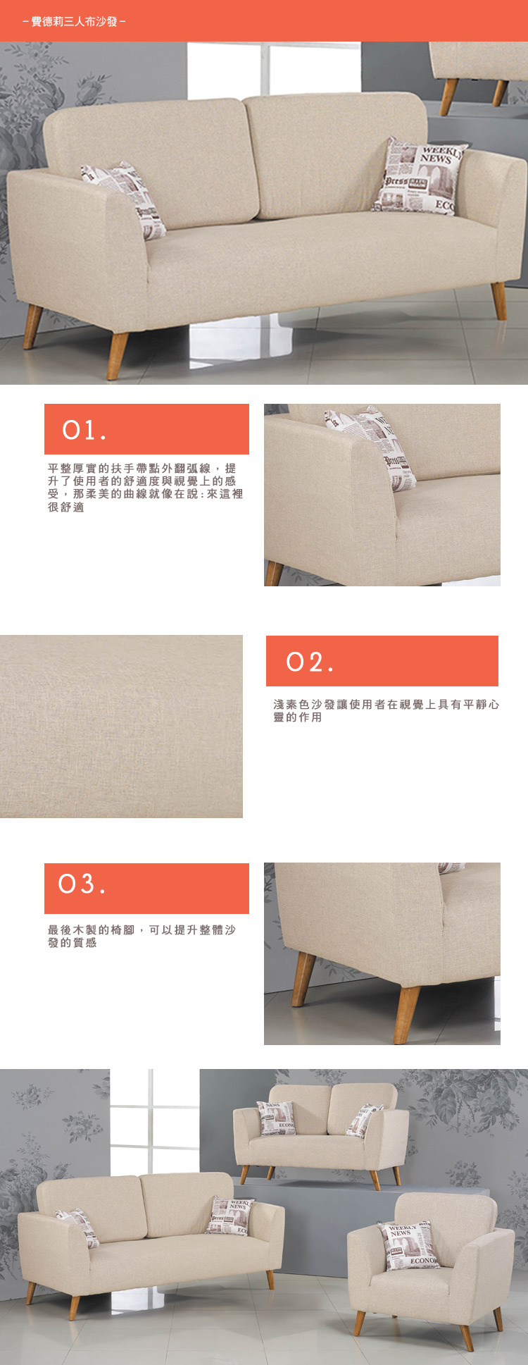 費德莉三人布沙發