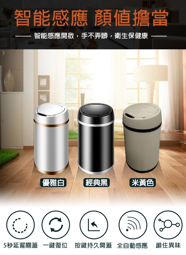 【LIFECODE】炫彩智能感應垃圾桶(12L)-電池款14320032/3/8