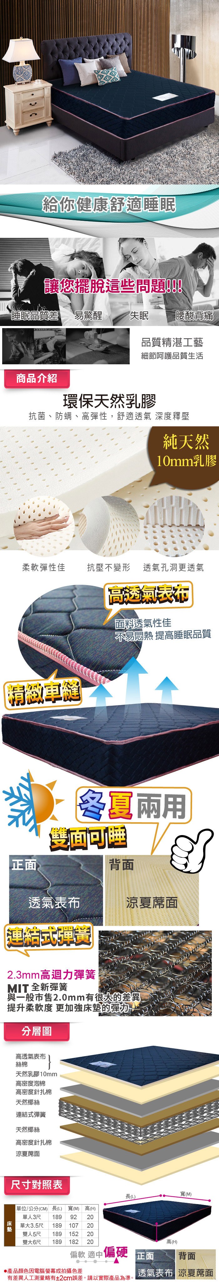ASSARI-布藍達乳膠護背式冬夏二用彈簧床墊-雙人5尺