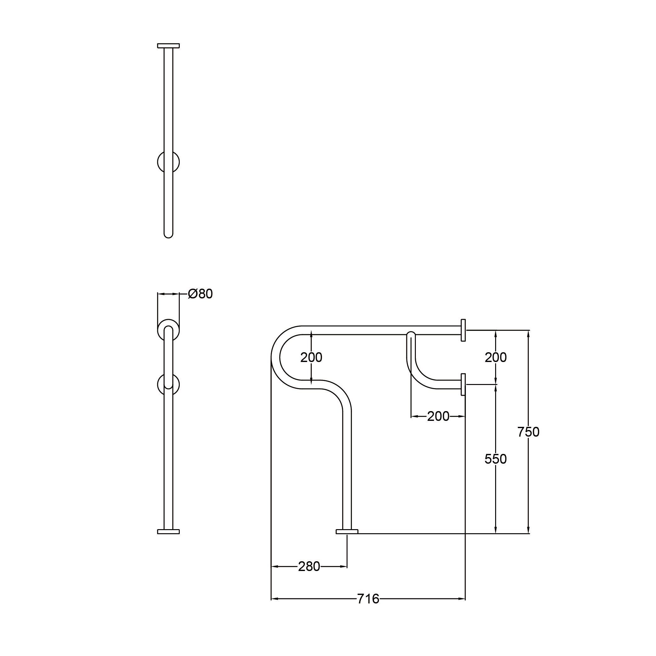 Derek不銹鋼L型扶手80x35x80cm/9503-80