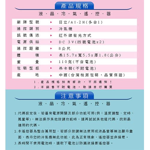 【聖岡科技Dr.AV】AI-2H北極熊(日立)液晶 冷氣遙控器 (日本IC 變頻/窗型/分離式 冷暖氣)