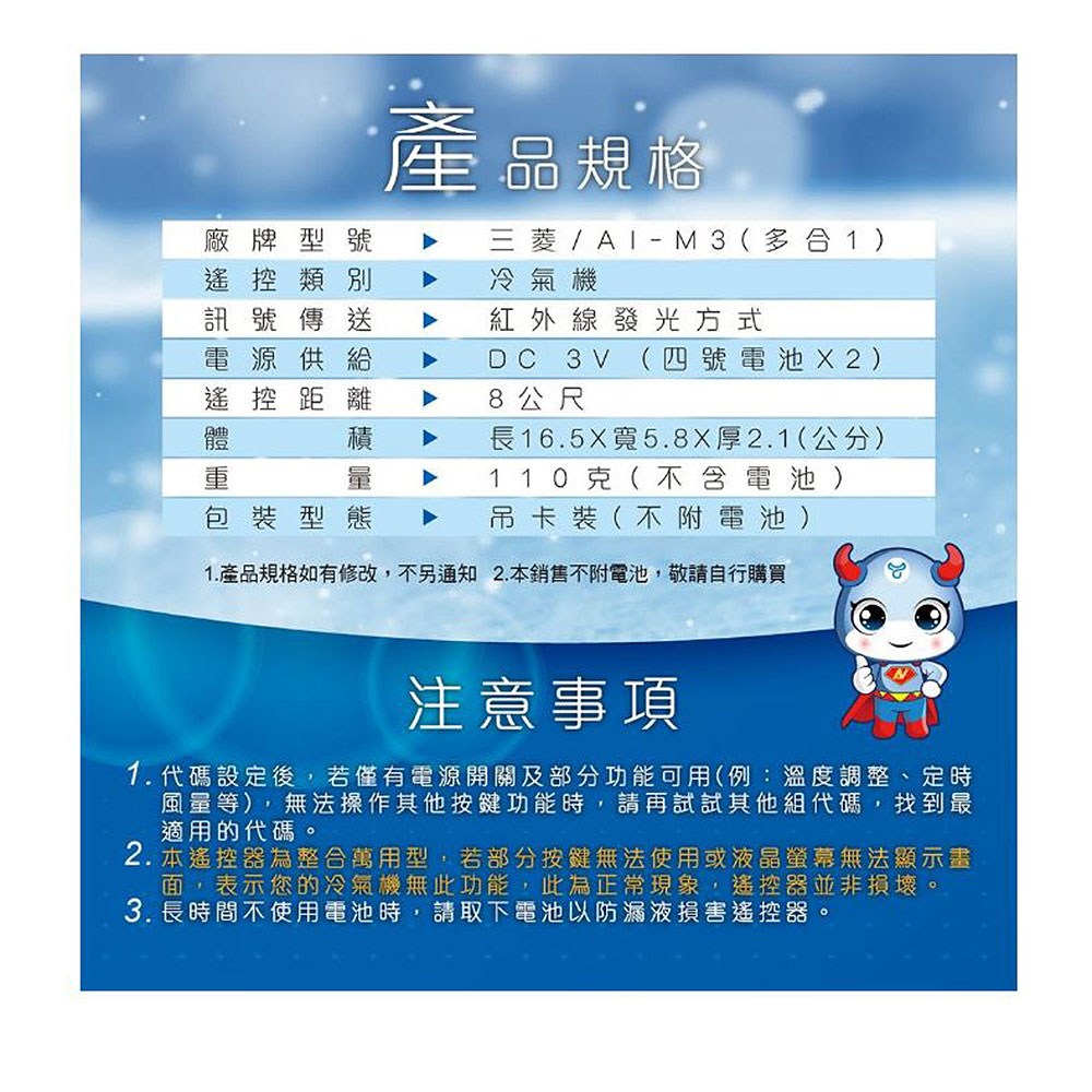 Dr.AV 北極熊系列冷氣遙控器 AI-M3 適用:三菱