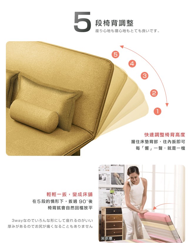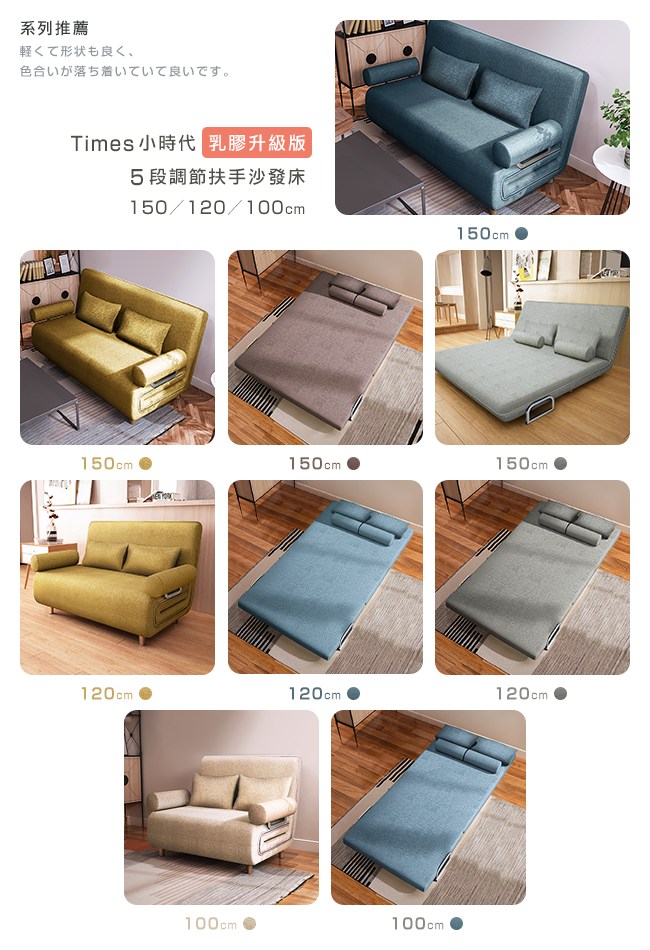 白天是沙發,夜晚搖身一變成為了床舖。空間雖然有限,卻框不著無限創意的您。點亮小空間的佈置,沙發床能夠放在客廳、臥室、書房,不佔用空間,非常適合小格局住宅使用。3WAY Sofa&Bed,三種用途:「沙發」不會帶來空間擁擠感,即使是小部屋也能感受到寬敞;「躺椅」輕鬆閱讀、使用筆電、平板,享受舒適生活的步調。「床舖」剛好的睡眠空間,作為客床也方便。【C'est Chic】Times小時代(乳膠升級版)5段沙發床-幅150,小坪數也能節省大空間,一個小小的改變,帶給生活一份幸福感。