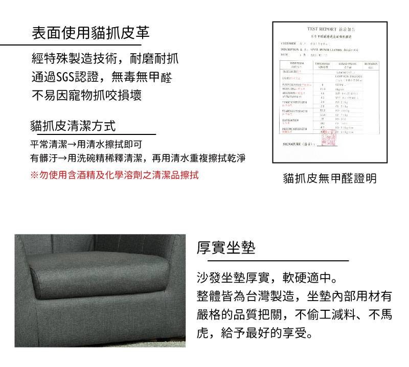【UHO】威爾-單人貓抓皮沙發 運費另計86灰
