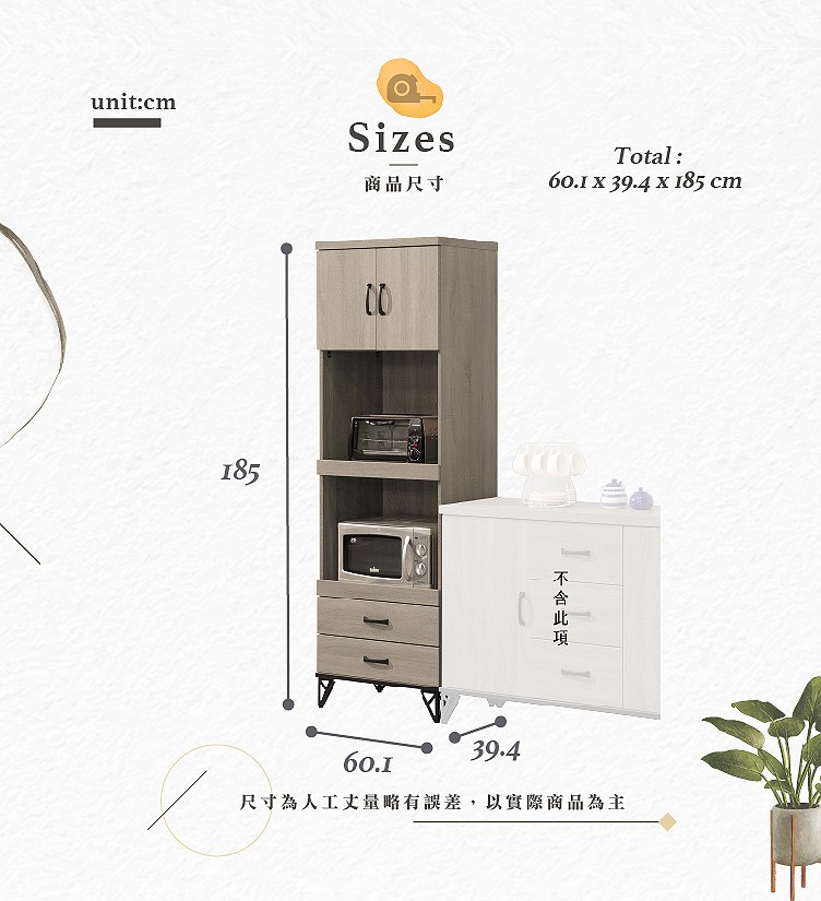 AS DESIGN 雅司家具-托米諾2尺高餐櫃-60*40*180cm