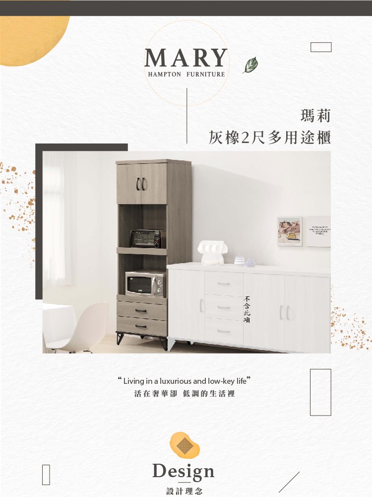 【Hampton 漢汀堡】 瑪莉灰橡2尺多用途櫃