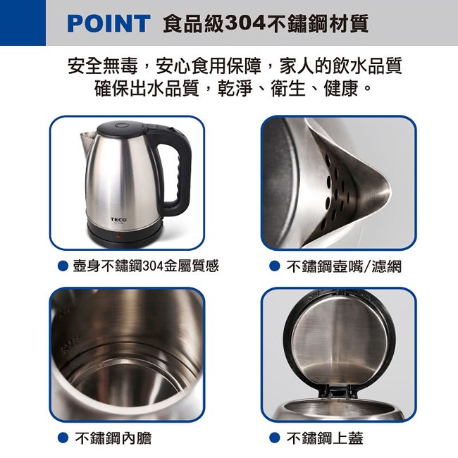 【TECO東元】1.8L大容量不鏽鋼快煮壺 XYFYK1705