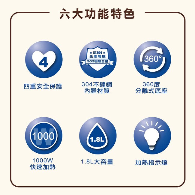 *三重安全防護:沸騰自動斷電、防乾燒保護、保險絲過熱保護