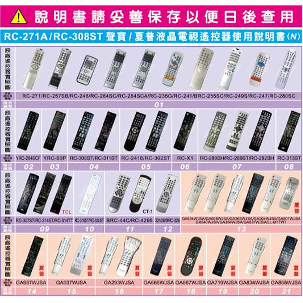 【聖岡科技Dr.AV】RC-271A電視遙控器(聲寶/夏普)液晶LED電視專用