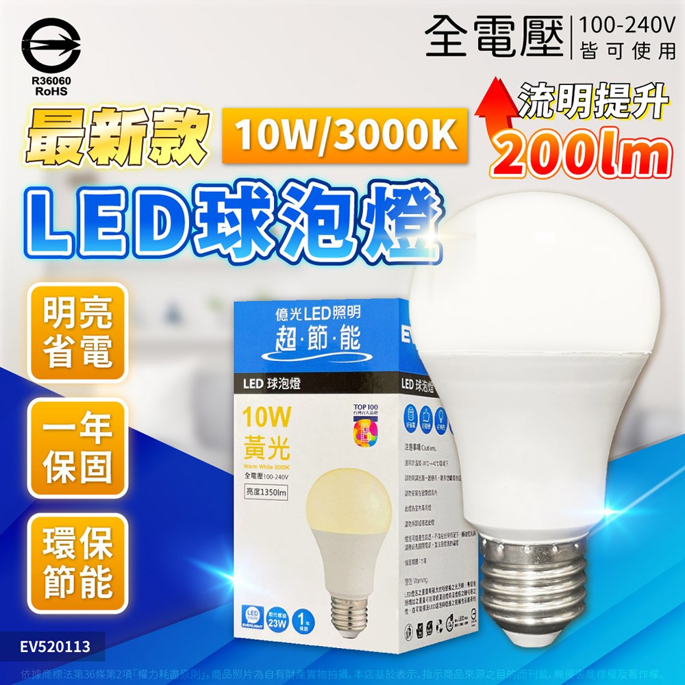 8入 EVERLIGHT億光 LED 10W 黃光 新戰鬥版 球泡燈