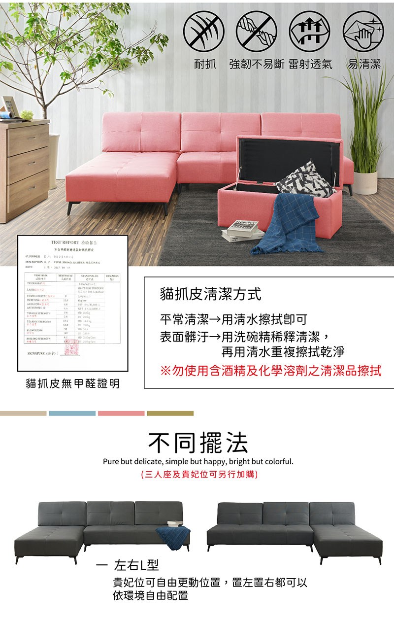 【UHO】無限-收納腳椅(貓抓皮/抗菌機能布)貓抓皮-19粉