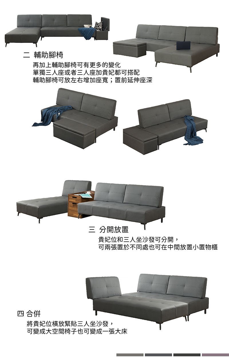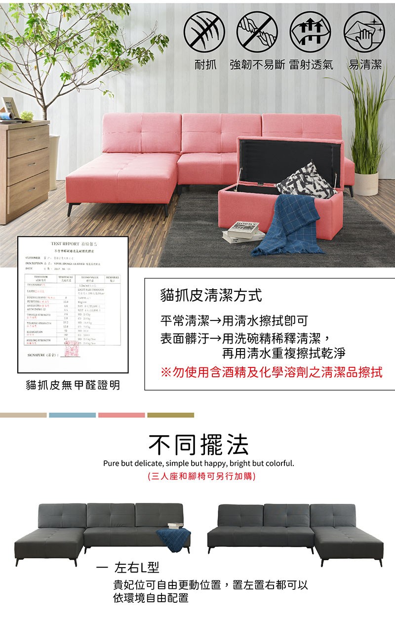 【UHO】哈姆-貓抓皮沙發床 貴妃椅 運費另計05