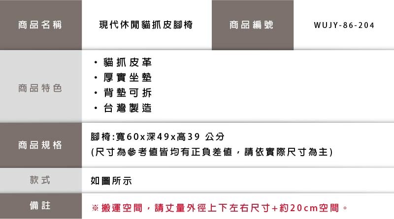 【UHO】現代休閒貓抓皮-腳椅86灰