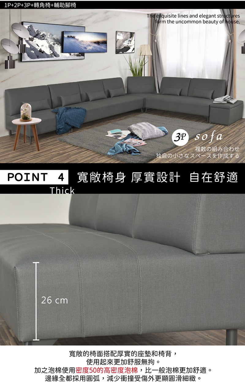 傢俱工場-星辰 厚實飽滿 貓抓皮獨立筒沙發 1+3人座淺灰#6741