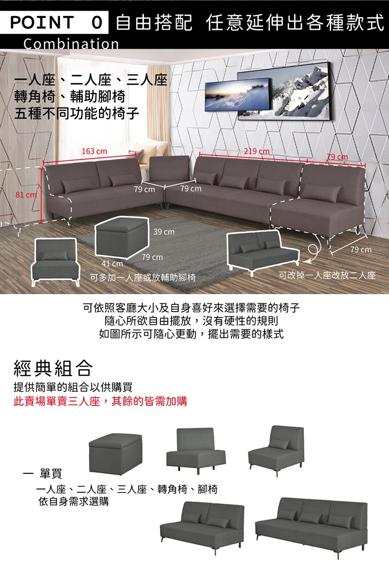 安妮單人沙發床-多色可選鐵灰