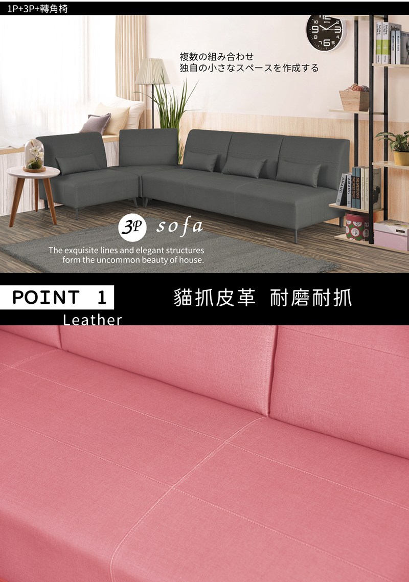 【IDEA】EO極簡獨立筒貓抓皮雙人沙發