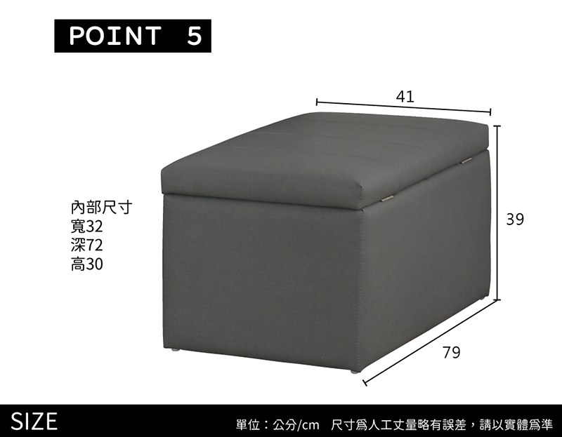 AS DESIGN雅司家具-田村霧灰耐磨沙發收納椅-45×38×43cm