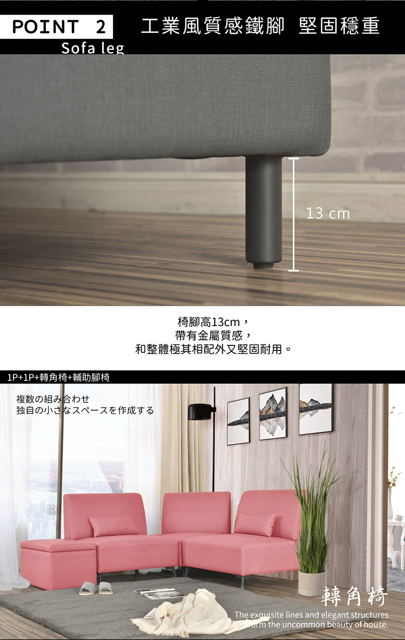 【UHO】無限-轉角椅(貓抓皮/抗菌機能布)貓抓皮-19粉