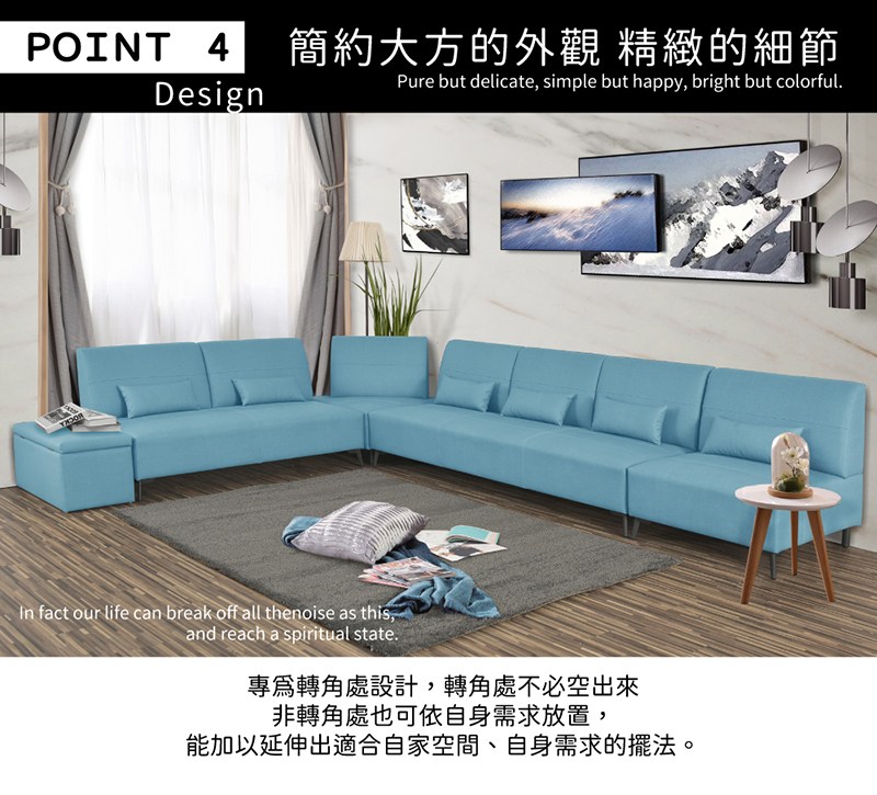 【UHO】無限-轉角椅(貓抓皮/抗菌機能布)貓抓皮-09藍