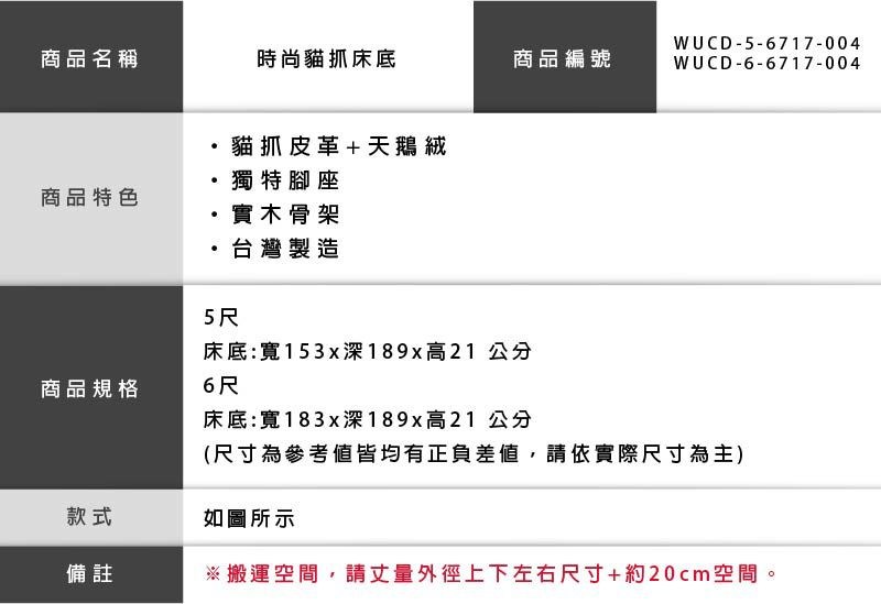 【UHO】零貳依-6尺雙人加大日式貓抓皮床底-運費另計(多色可選)05