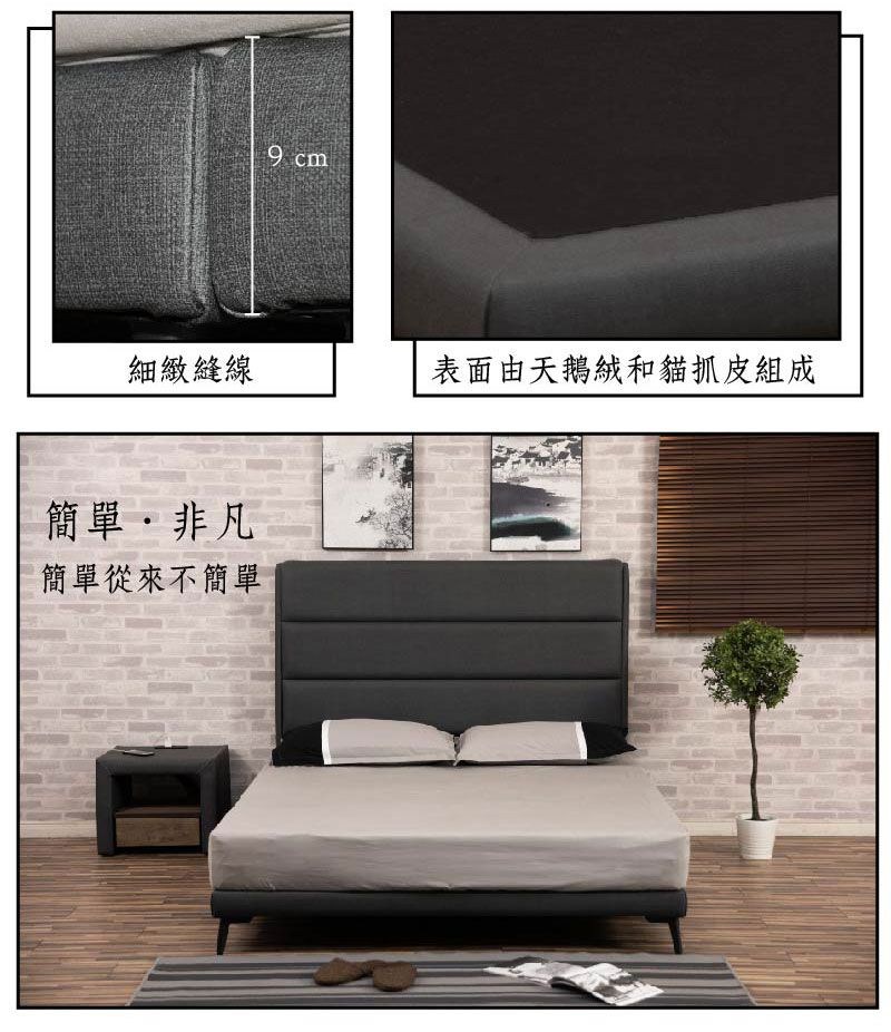 IHouse-修傑凱 簡約 貓抓皮床頭片 雙人5尺鐵灰色#707-01