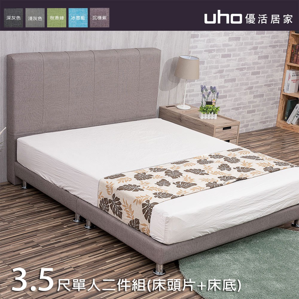 【UHO】波娜-貓抓皮革床組(床頭片+床底)-3.5尺單人86灰