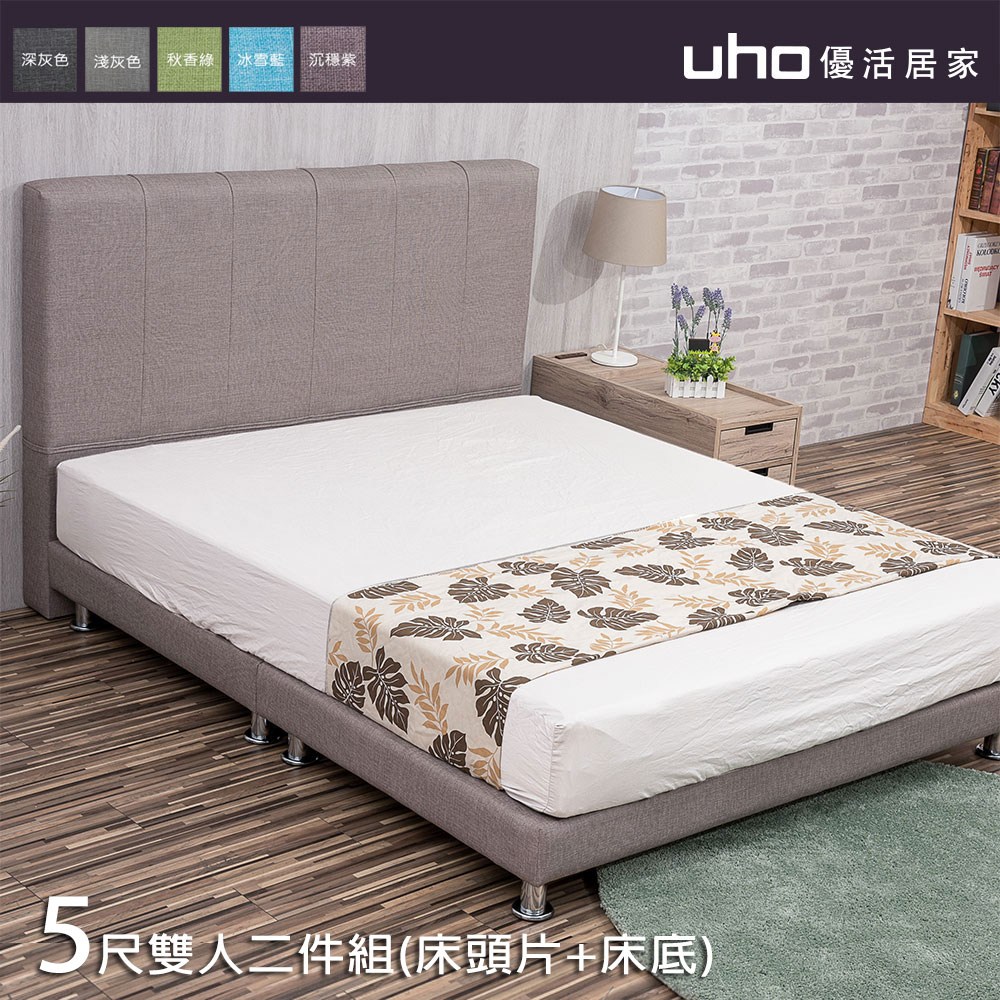 【UHO】波娜-貓抓皮革床組(床頭片+床底)-5尺雙人05