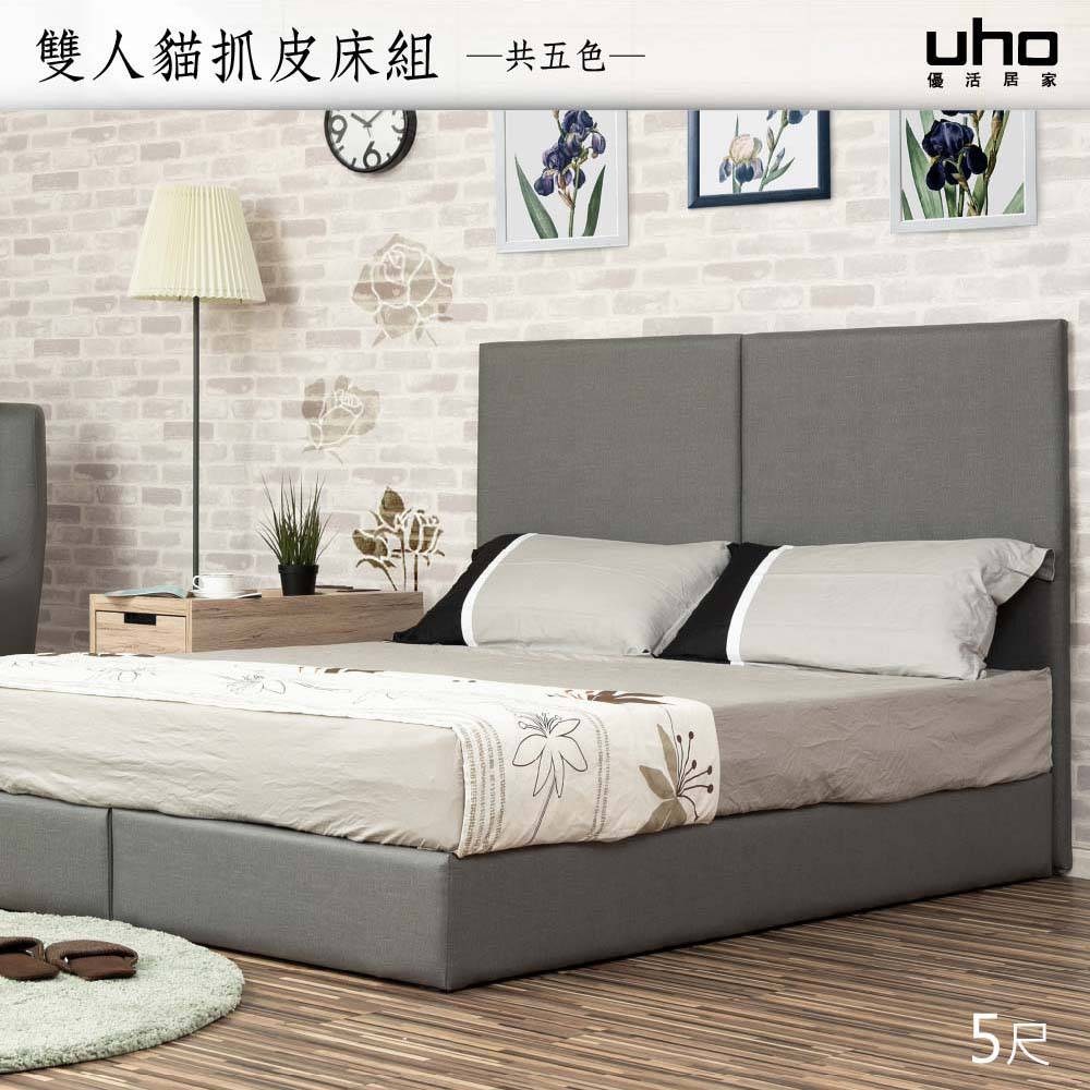 【UHO】霍華德-質感5尺雙人貓抓皮二件組(床頭片+床底)05