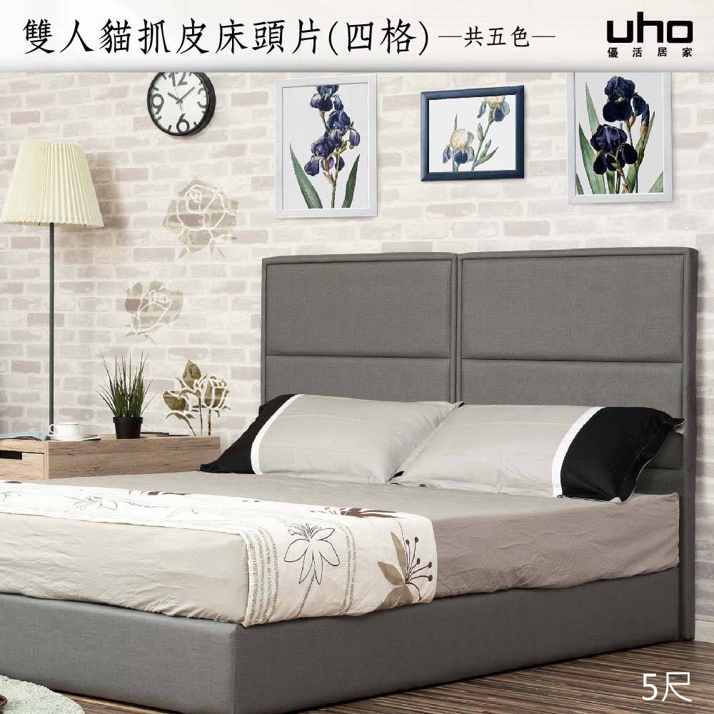 【UHO】謝爾頓-四格造型5尺雙人貓抓皮床頭片83灰