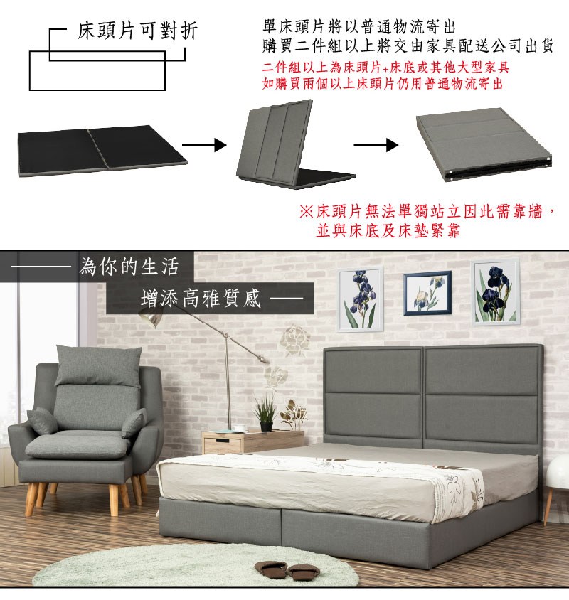 【UHO】謝爾頓-四格造型6尺雙人加大貓抓皮床頭片83灰