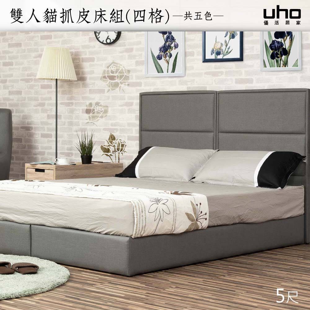 【UHO】謝爾頓-四格造型5尺雙人貓抓皮二件組(床頭片+床底)86灰