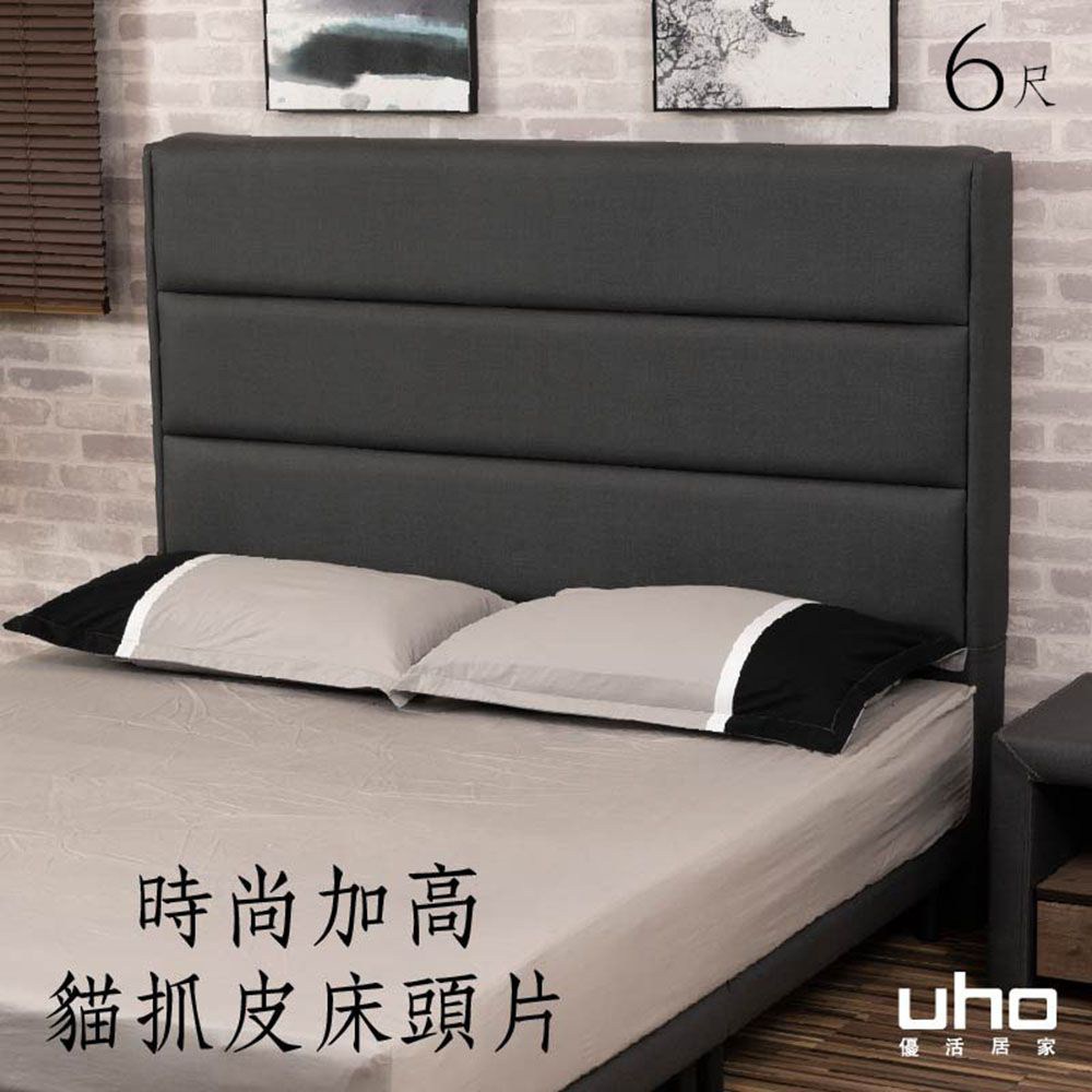文創集 菲達斯6尺雙人加大貓抓布&皮革床頭片-184x19x111cm免組