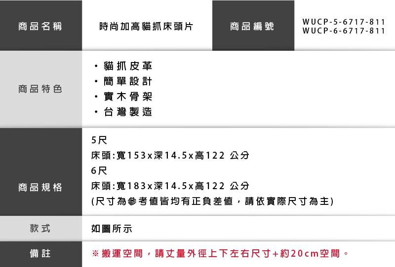 Homelike 喜家居雙人加大6尺貓抓皮實木床頭片(2221)-180x10x108cm