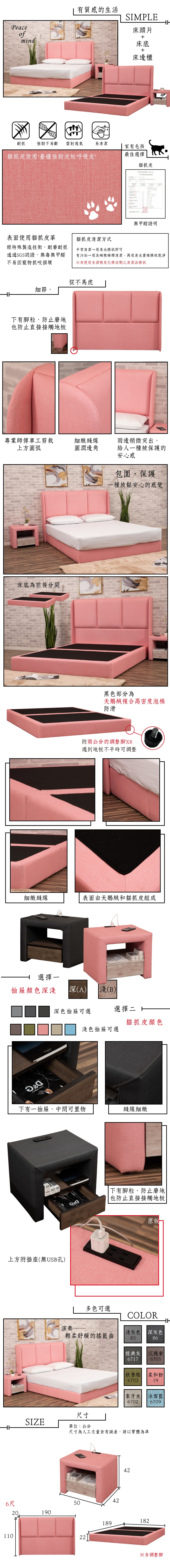 【UHO】皇家貓抓皮3件組(床頭片+床底+USB床邊櫃)-6尺雙人加大05