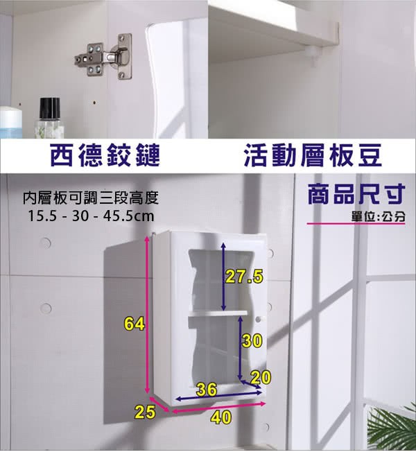 內附層板一片高度三段可調15.5 - 30 - 45.5CM(層板可加購)