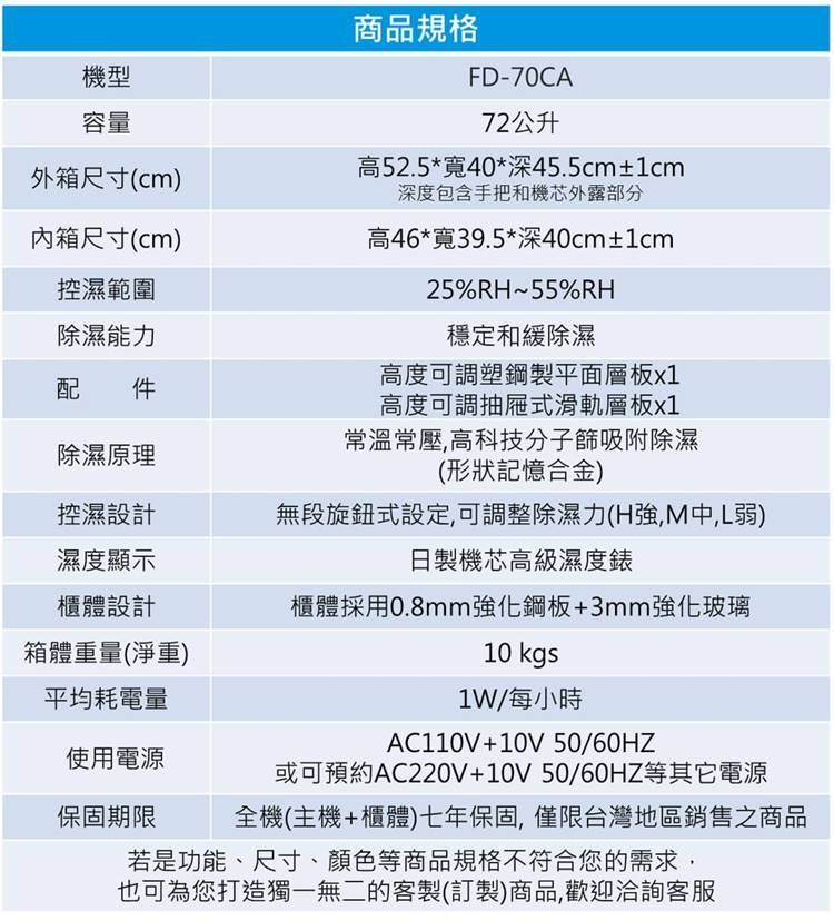 防潮家 72公升時尚型 長效除濕電子防潮箱 FD-70CA