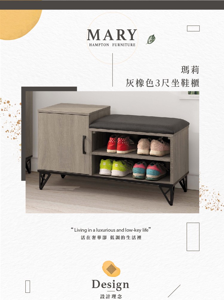 【唯熙傢俱】漢德淺灰橡色3尺座式鞋櫃